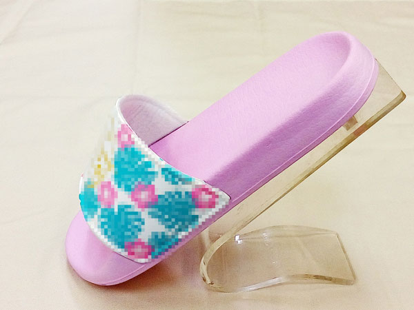 こちらは発砲EVAの底材にシルクプリントしたPUアッパーの組み合わせです。